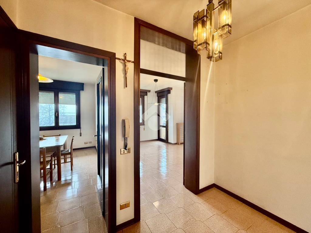 Ingresso in casa da comodo disimpegno giorno che accompagna da una parte alla cucina separata abitabile e dall'altra alla sala da pranzo unita al salotto. Questi ambienti sono affacciati su un comodo poggiolo esposto al sole.